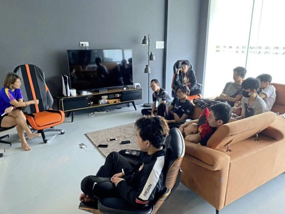 她没有一般临床心理师的正装形象,而是身穿羽球服,披上电竞团队的外套。她也没有会晤室,没有沙发、茶几做咨询。话当年,国家体育研究院有位同事是组织心理学背景的,咨商时安排了桌椅和球员“好好”对谈,在充满汗水的球场反而格格不入。实际上,有时趁运动员训练完,他们就在场边席地而坐咨商。