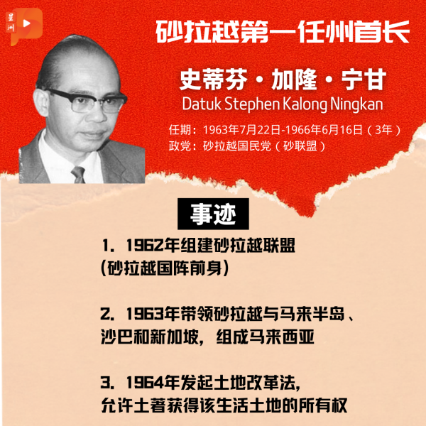第一任首长:史蒂芬·加隆·宁甘(Stephen Kalong Ningkan)