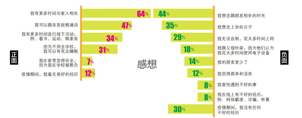 ·整体而言,马来西亚学童珍惜疫情期间有更多时间跟家人相处,但多数人尤其是年纪较大和东海岸及东马偏远地区的受访者,则想念在学校跟朋友相处的时光。
