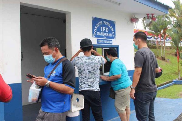 (山打根12日讯)大批山打根民众赶在80%折扣优惠的最后一天,涌往根警区总部排队缴付交通罚单,导致大排长龙,人龙一路从警局交警部内排到警局外,长达超过300公尺。