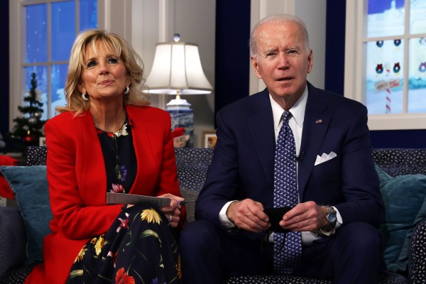 在平安夜,拜登和妻子吉儿(Jill Biden)接了一些各地孩子们打进北美航太防卫司令部(NORAD)耶诞老人追踪系统的电话。