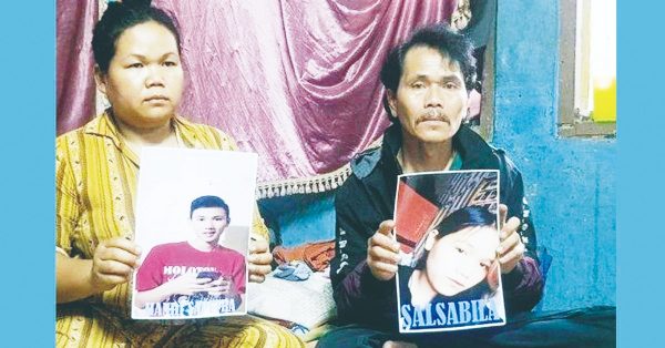 小情侣的父母手持两人的照片,盼军方还给公道。(图取自Tribun Jabar)