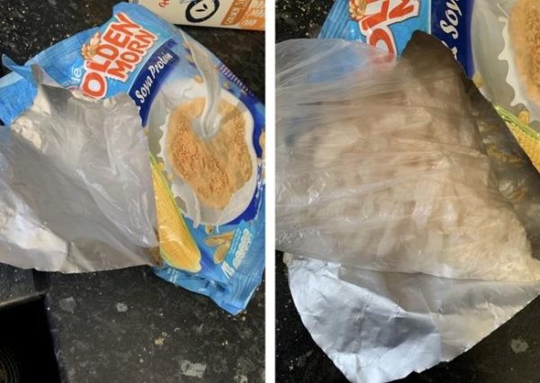 根据《镜报》报导,娜西尔去年夏季某天早晨,一如往常地为4名孩子准备早餐时,她发现盒装麦片拿起来的重量感觉还有一半满,却倒不出东西。娜西尔伸手一探,发现是一个透明塑胶袋挡住了开口,里面装满了白色结晶体,经过一阵查询资料后,她感到无比震惊,因为里头装的有可能是冰毒。