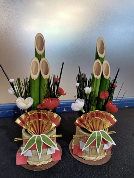 新年时节,日本人都会在家中摆设贺年饰品:镜饼(Kagami mochi)、注连饰(Shimekazari)、达摩(Daruma)、门松(Kadomatsu)、羽子板(Hagoita)。