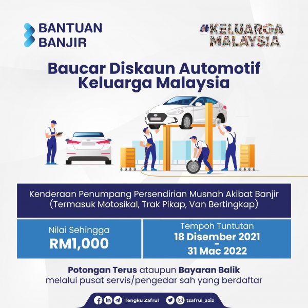他今日发文告说,大马一家汽车折扣券的索取截止日期是3月31日,水灾受促尽速向注册汽车维修服务中心和授权经销商索取,以免造成任何不便。