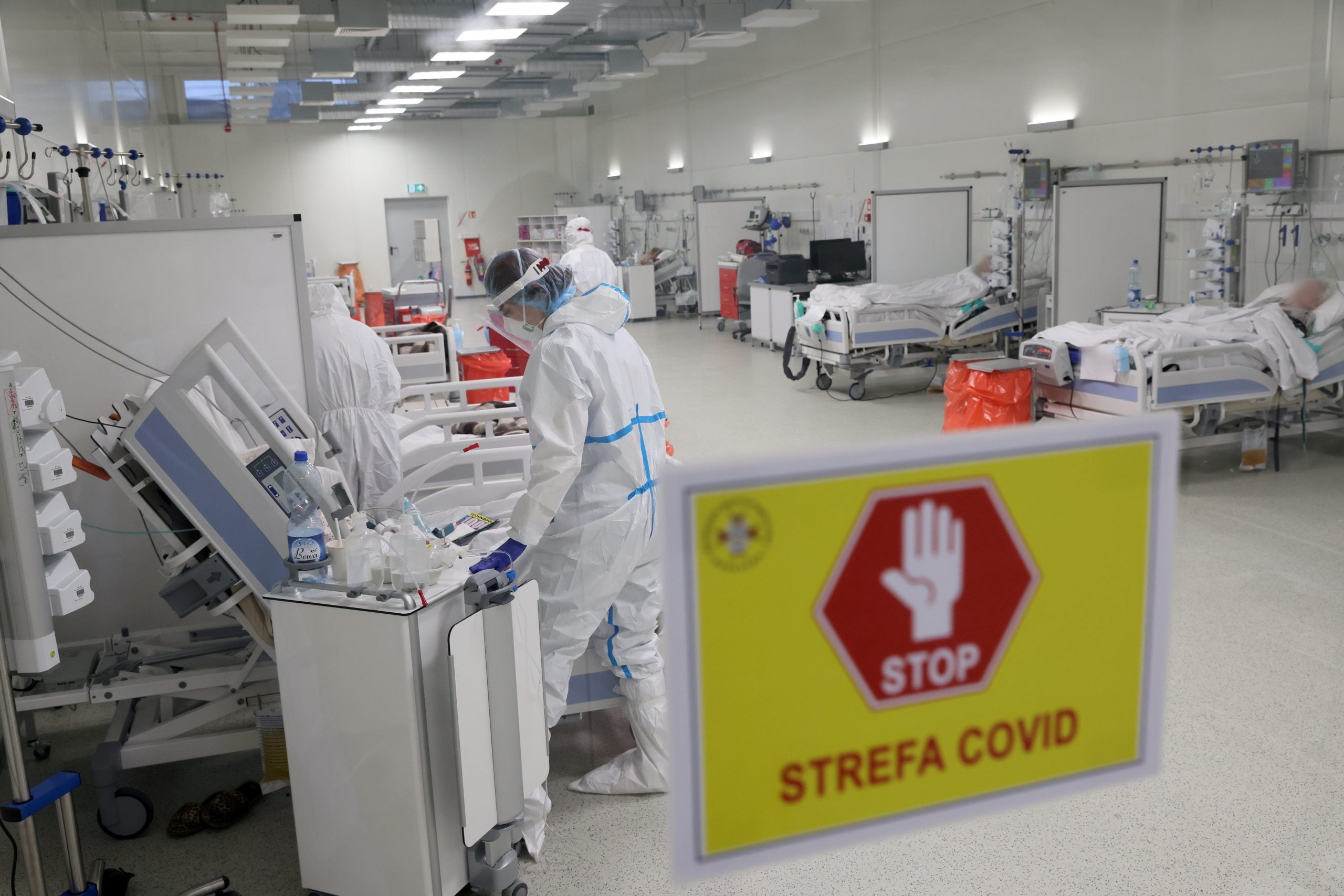 波兰政府的抗疫专家小组成员集体辞职,抗议当局在抗疫政策上没有重视他们的建议。图为华沙一定收治冠病重症患者的方舱医院。(欧新社照片)