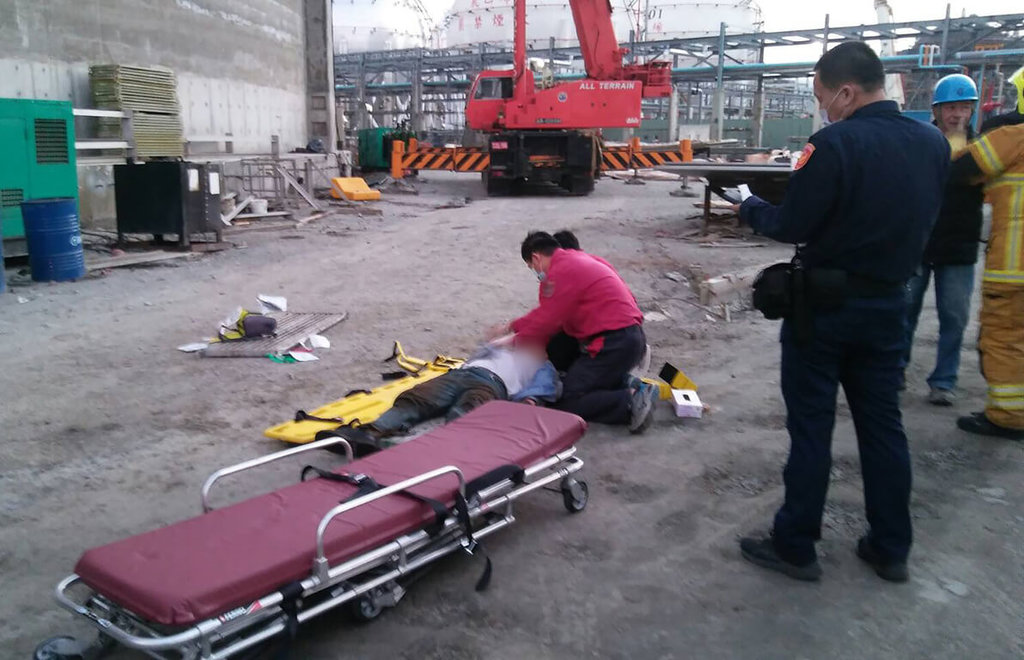 (高雄15日综合电)高雄港际码头15日下午发生工安意外,21名工人跌落鹰架,导致8人受困桶槽,7人先被消防员救出,其中1人送医后不治,最后1人遭鹰架压住,经5小时抢救后终于救出,但已无生命迹象,至晚上11时许仍在医院抢救当中。