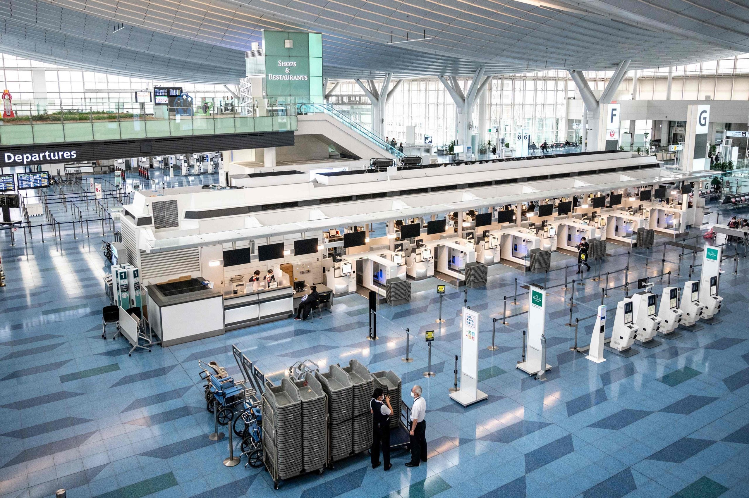 日本羽田国际机场离境大厅周二仍然是空空荡荡、冷冷清清的。在日本严格入境规则下,有超过37万名外国人陷入进退不得的窘境。(法新社照片)