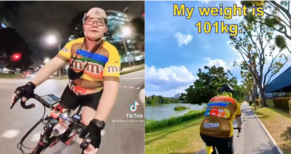 这名署名mikeycruiserian的脚踏骑士,两天前在tiktok发布视频。只见视频中的他,身穿一巧克力厂牌的运动上衣,时而白天时而黑夜,在组屋区、河边和公路旁等多个地区骑车。