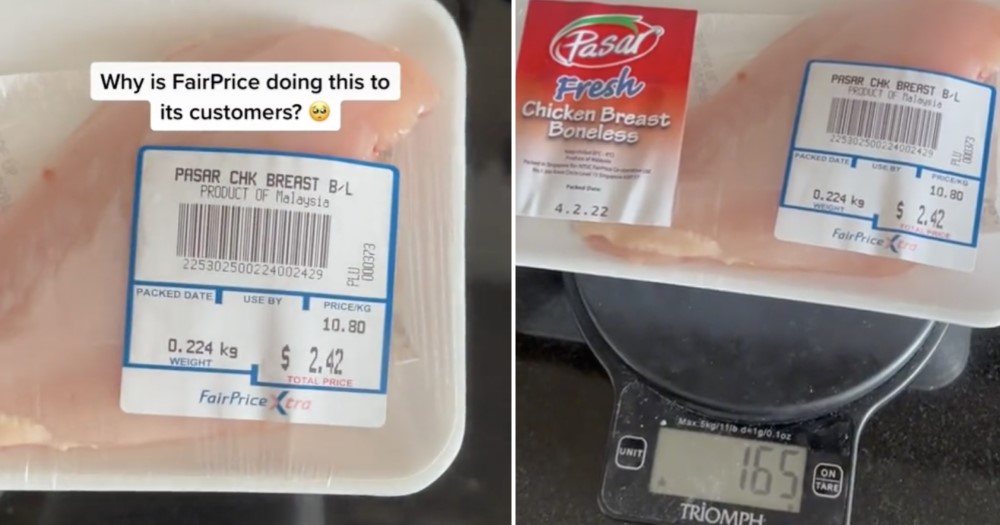 (新加坡6日讯)网民指职总平价超市售卖的鸡胸肉不,拍摄视频放上网表不满,回应,呼吁顾客在发现标签有误时,立即通知超市职员,以便超市及时纠正。