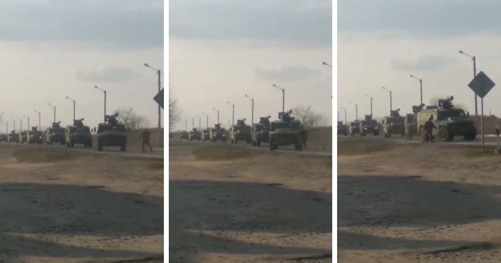 影片的拍摄地点不清楚,但片中超过10辆车组成的车队,许多车身清晰可见大写字母Z,与俄军之前在乌克兰边境集结所见的军车车身相同。