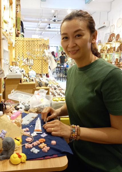 来自槟城的妈妈郑美意分享,由于自己的孩子不能闻具有化学成分的香水香精,5年前她开始接触扩香石并制作给家人使用。疫情暴发后,她开始制作迷你精致的扩香石,用来扣在口罩上,充当口罩香熏扣。