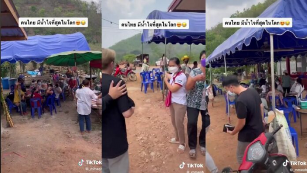 抖音网友@_mmeah指出,视频中的遊客是自己的朋友,来自新加坡,观光完清迈后,朋友便想驾驶摩托车前往夜丰颂拜县遊玩,途经村民的婚礼,现场十分热闹,有各种食物摆放在外面,他们误以为是餐馆,因此误闯人家的婚礼,不过当地村民非常善良,把他们请到婚礼,因语言不通他们就乖乖的坐在一边,没一会村民就给他们拿来了好吃的食物。