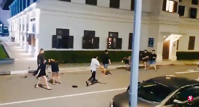 (新加坡5日讯)10人深夜在加东路中央混战,挥拳、飞腿,还有“大只佬”被指挥舞武器。