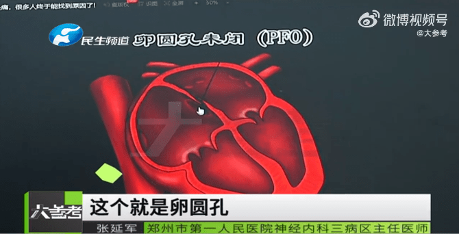 医生表示,一般在胎儿期,心脏有卵圆孔是血液正常流通的通道,不过在出生后卵圆孔会逐渐闭合;现在发现有将近30%的人没有完全闭上。正常情况下,房间隔是要长得很完全丶很结实,房室之间的血液是不能流通的,不过医生指出若卵圆孔未闭合,当病人胸腔压力大的时候,比如咳嗽或深呼吸,血液可能直接从左心房跑到右心房。