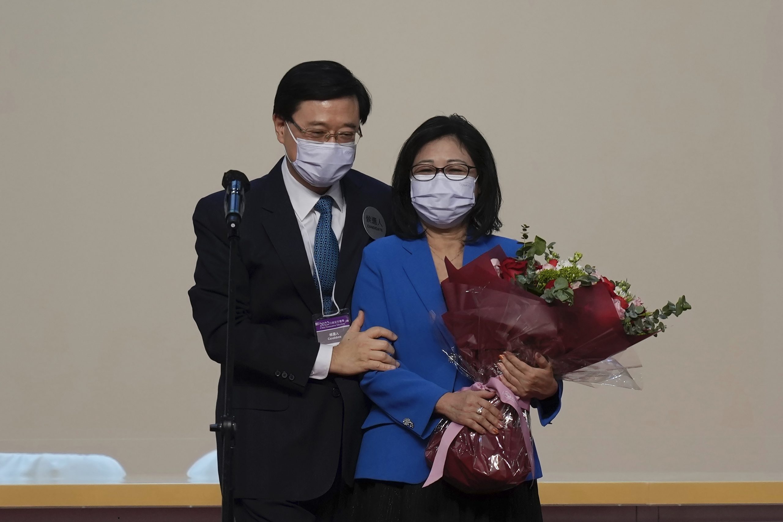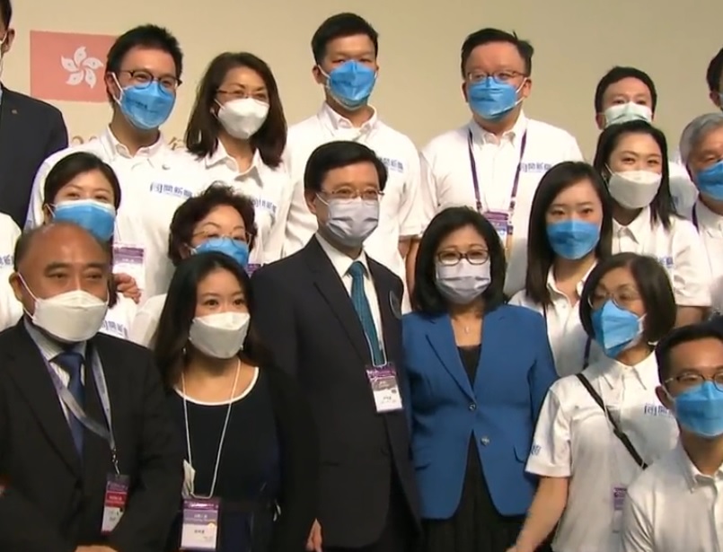 李家超当选香港特首后,在选举公布地点发表简短感言,感谢每一位选委,无论是支持或不支持他的人。以及电视机旁边的香港市民,感谢每一位支持和鼓励。