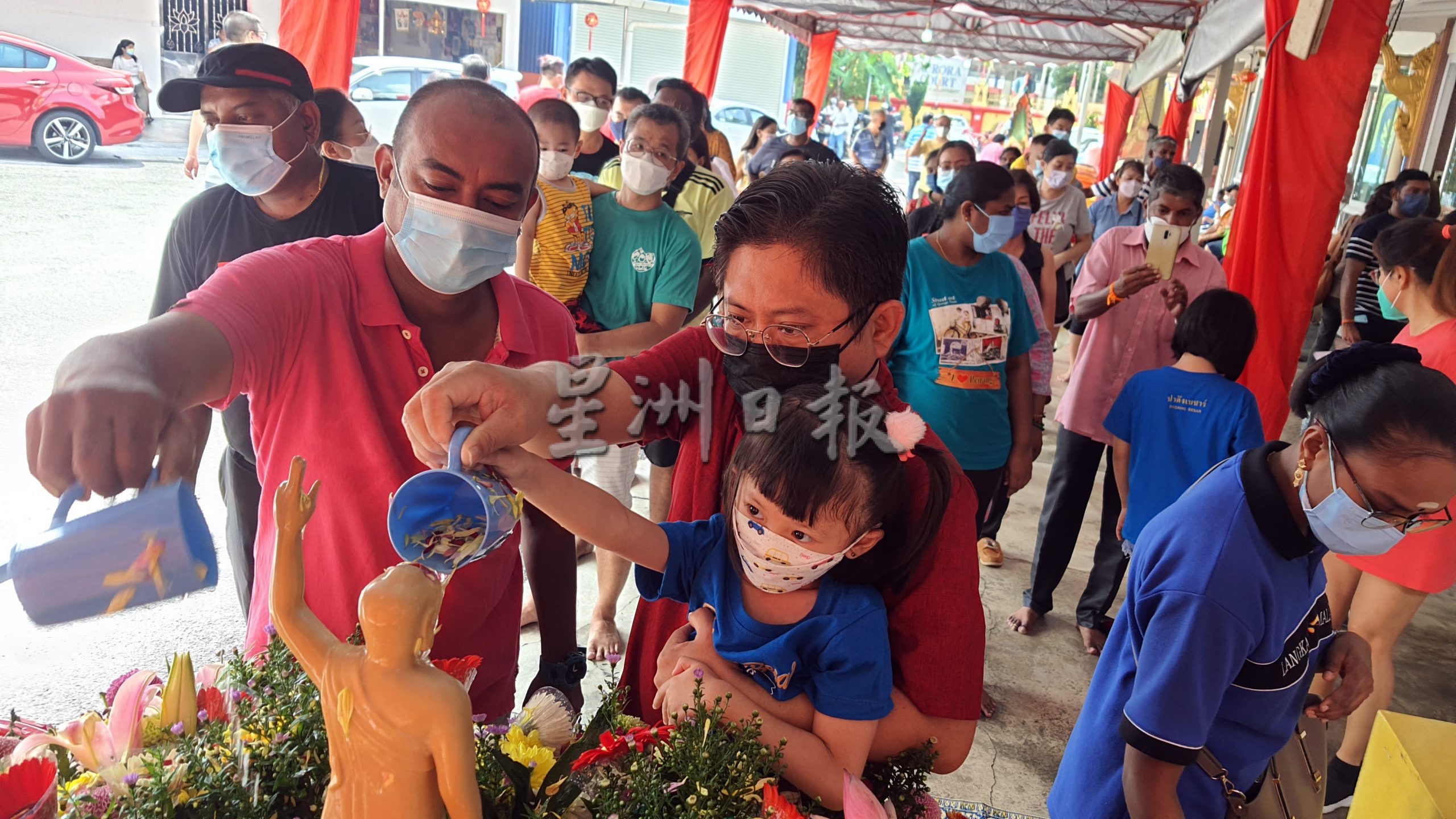 (槟城15日讯)阔别两年后,民众终于盼来了实体庆祝卫塞节,亲手沐浴佛身。