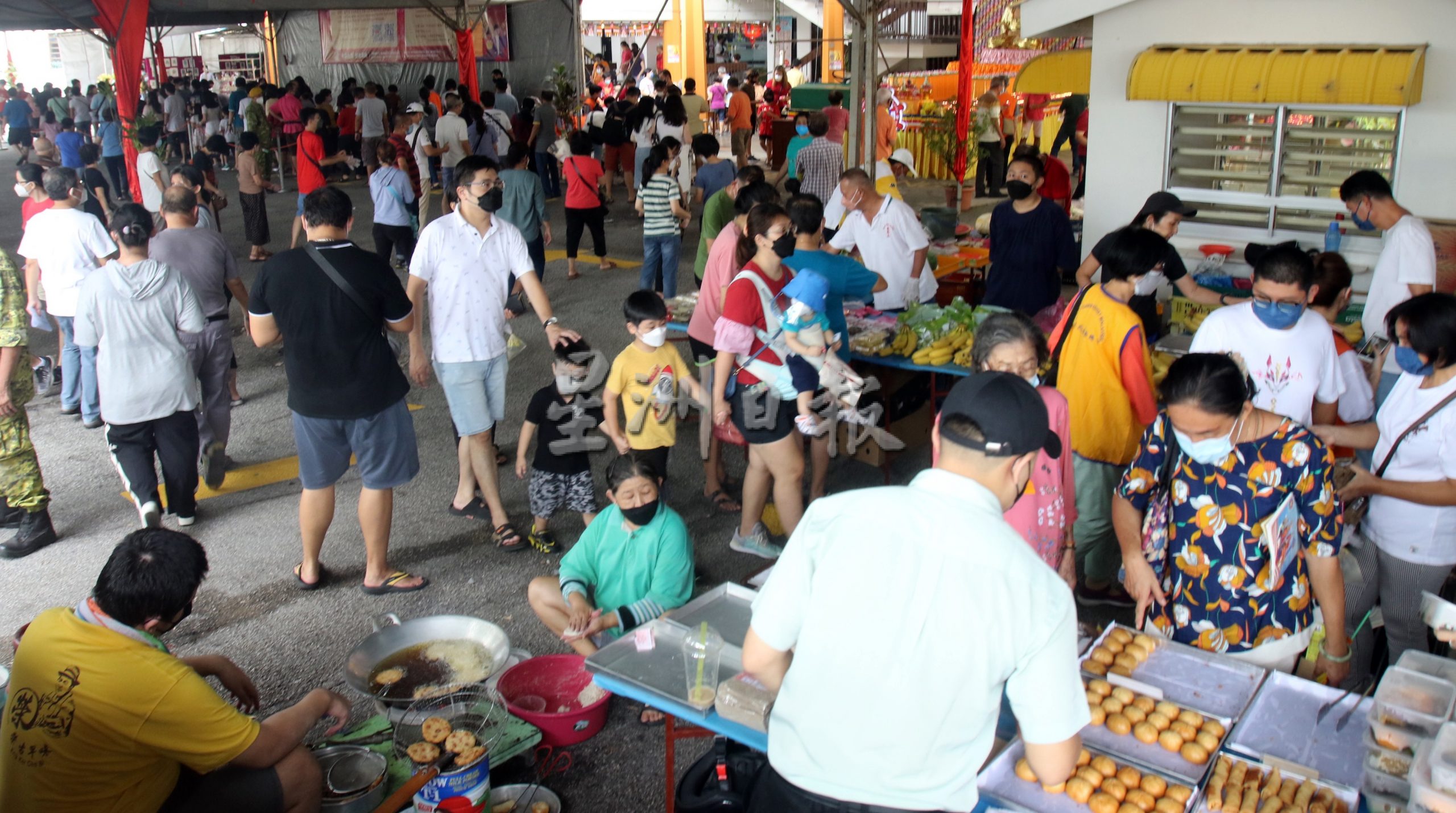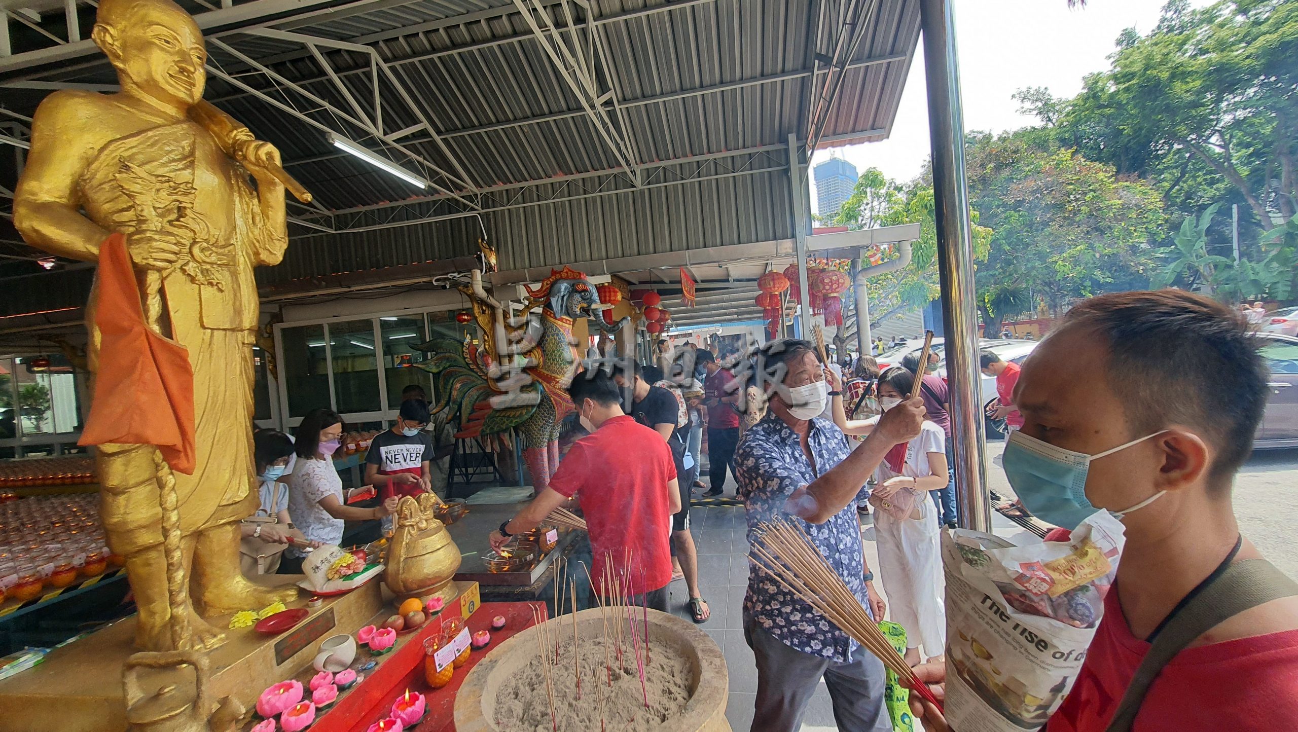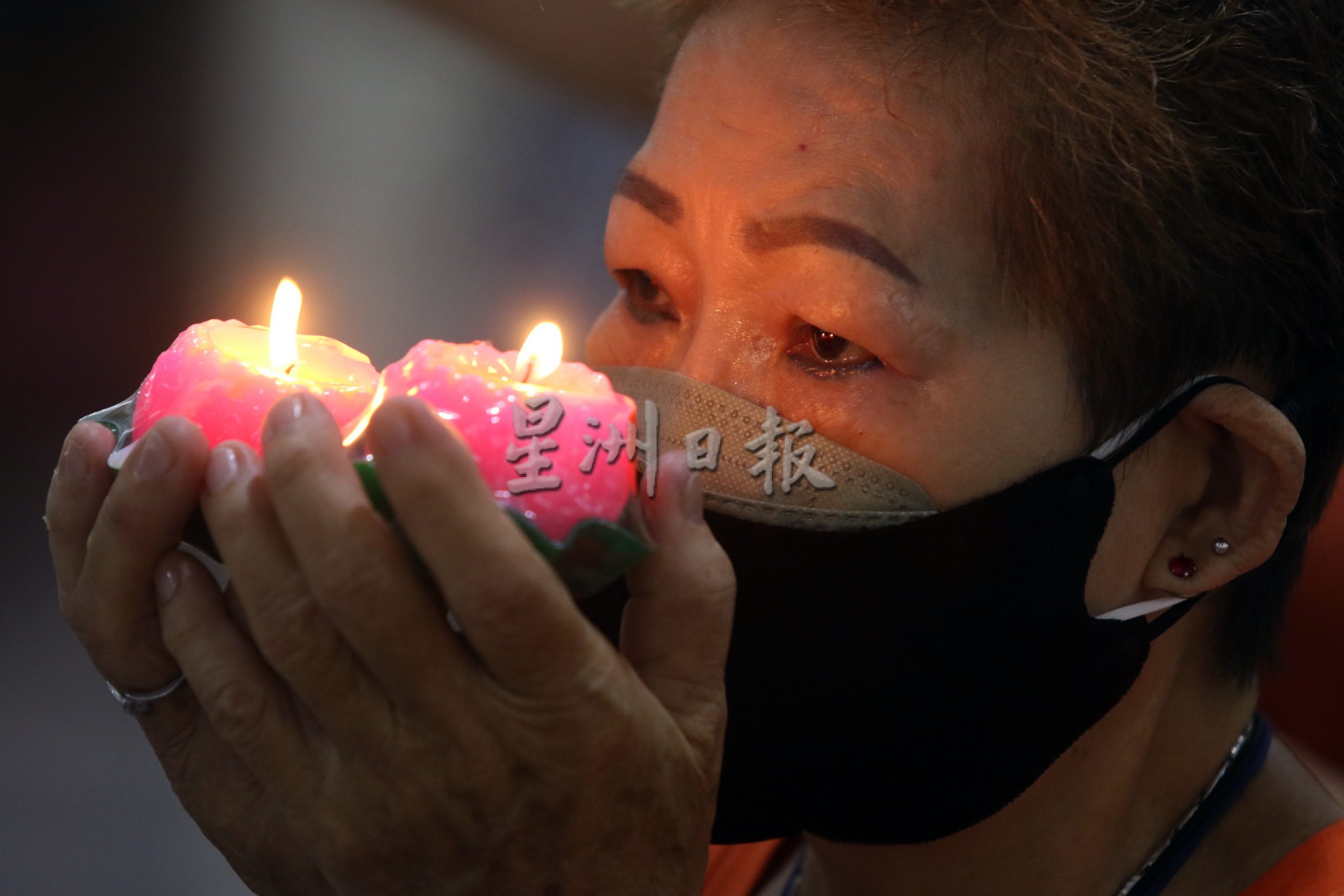 今早可见,许多善信一家大小前来马佛总,所有人都戴着口罩,有秩序地排队等待浴佛、点灯和上香膜拜,共沾法喜。
