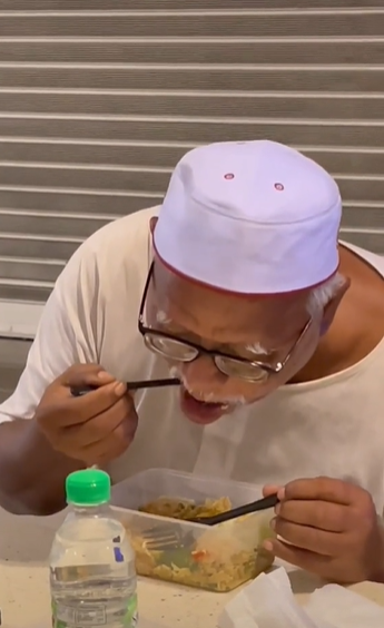 诺因诗拉上月30日到吉隆坡南湖镇综合交通终站(TBS),准备搭乘巴士返回霹雳时,发现这名老翁正狼吞虎咽地用餐,且表情忧愁。