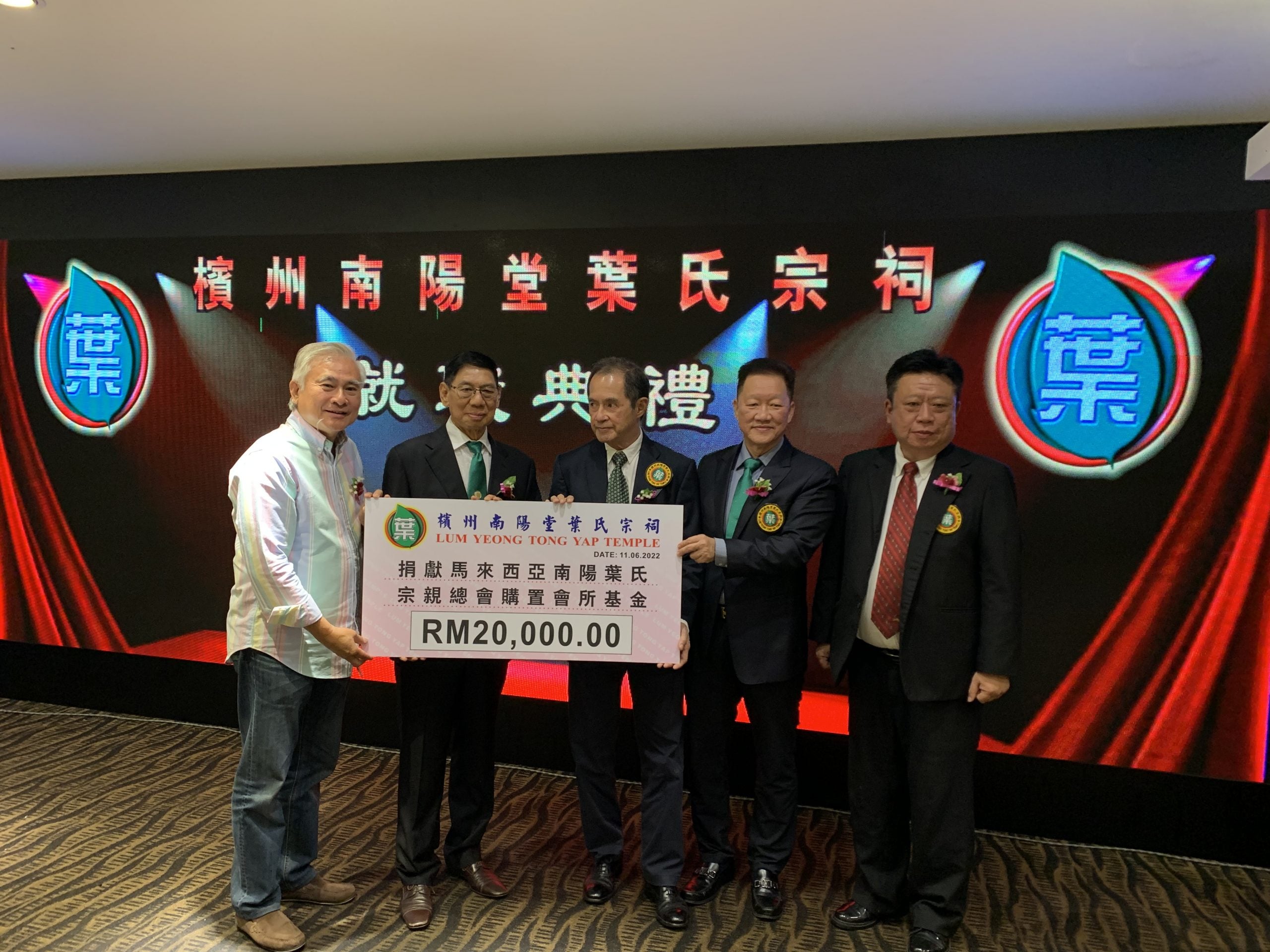 叶国文感谢槟州南阳堂叶氏宗祠,捐献2万令吉给总会,作为新会所基金。