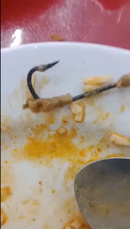 视频 | 吃咖哩鱼头惊见大鱼钩!老板扣60仙 称”不关我们事”