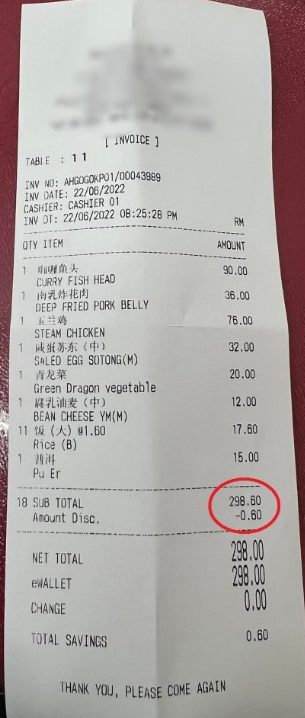 “(这餐)298令吉,应该就是我们没吃到鱼钩死不去,扣个60仙就当作施舍我们吧?”