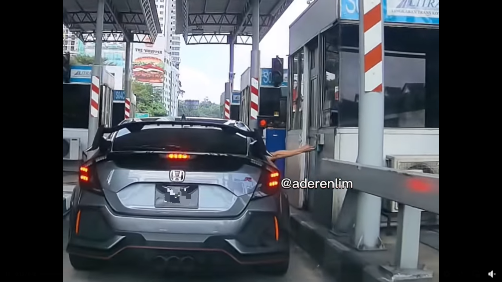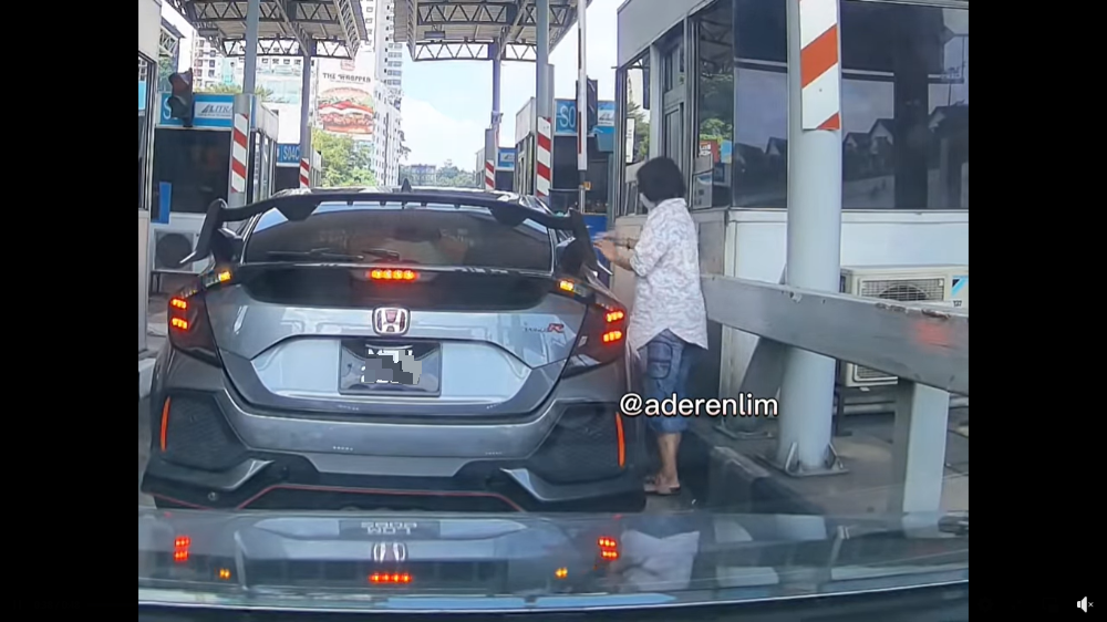 (八打灵再也6日讯)见前方轿车迟迟未驶离收费站,后方的好心妇女立即下车帮忙缴付过路费!