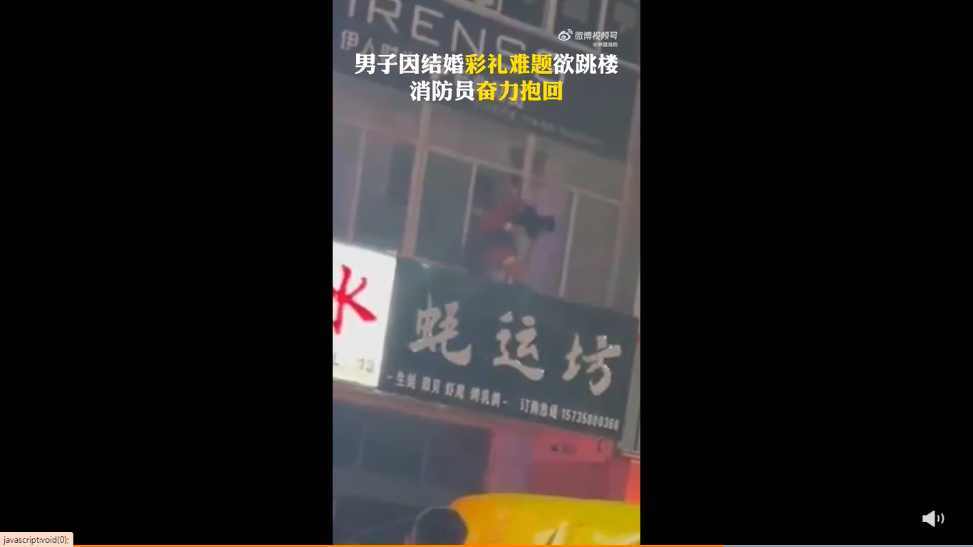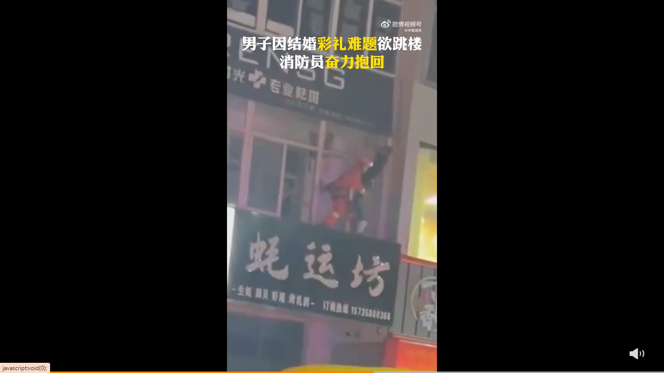 (山西18日讯)中国山西一名男子因彩礼难题,一时想不开欲跳楼轻生,幸被消防员成功救下。