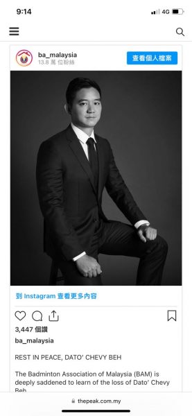 马彦山去世消息传开来,他生前参与的社团组织,包括大马羽总,纷纷在社交媒体上向他的家人致哀。
