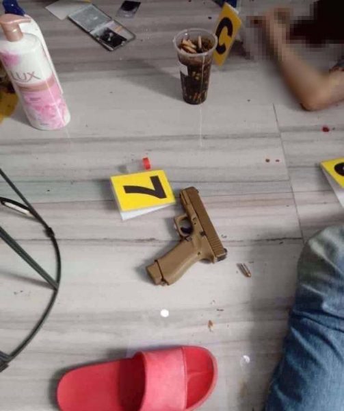 警方在现场寻获一把Glock 19型枪、41枚子弹和43.67克K他命,警方正在进行调查,遗体将被送到德塔拉寺庙。