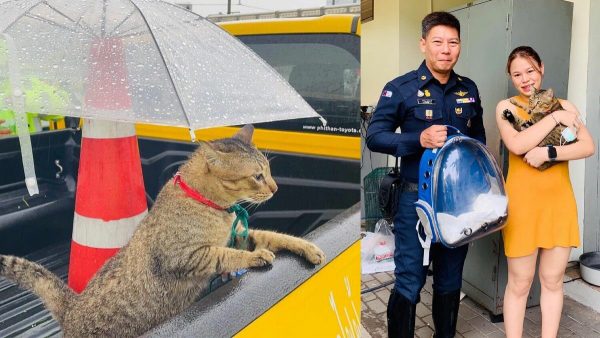 “曼谷外环高速公路”脸书页近日上传了一隻条纹花猫的可爱照片,公路工作人员把牠照顾得很好,下雨就给牠撑伞。博主贴文说,“猫咪走失了将近一个月,感谢大家帮忙寻找牠的饲主,现在牠的饲主来接牠回家了。要是大家在高速公路上有紧急情况,可以拨打1543高速公路救助热线。”