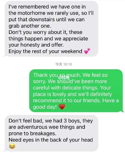 “我就真的更内疚了,但是她的安慰真的是温暖了我的心!等回家准备给房东买个礼物寄过去。确实是我们没有看好娃,以后出门需要更小心。”