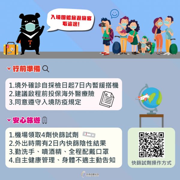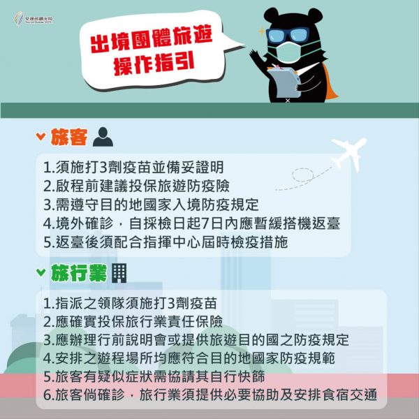 无论海外旅游团来台湾或台湾旅游团到海外,都建议投保海外医疗险等相关保险,在旅游期间确诊冠病,采检起7日内都应暂缓搭机。