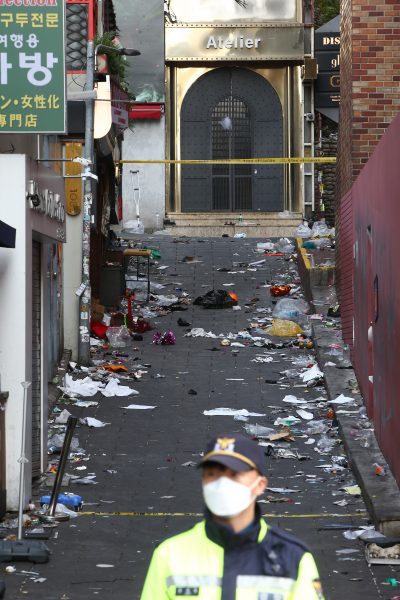 《香港01》报导,这位移居韩国已有10年的港男指出表示,他们在梨泰院附近的餐厅吃了晚餐后,打算移师酒吧庆祝一下,经过斜坡窄巷时,前方的人群却开始停了下来,后方的人却继续挤上前来,他们被围困在中间,进退两难。