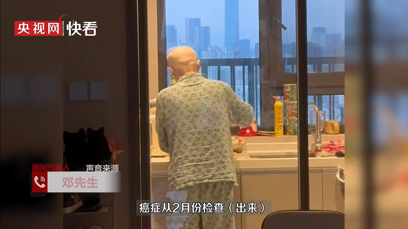 邓男表示,妈妈今年2月确诊罹患癌症,当时妈妈已经做了三期化疗了,身体状况很差,但她还突然坚持下厨。