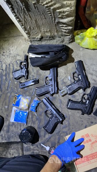 警方在蔡姓嫌犯住处,起获改造手枪4枝、土制爆裂物1个、手枪子弹25颗、步枪子弹8颗、杀伤力强大的达姆弹1颗、枪枝零组件1批、枪枝改造工具1批及手机5支等赃证物。