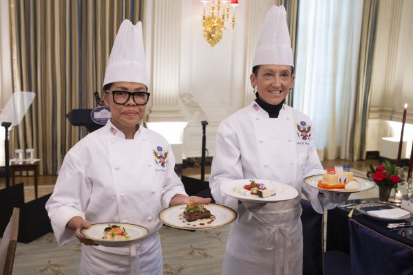 拜登宴请马克龙,菜单上有一道菜是龙虾、鱼子酱加上南瓜馄饨,白宫为此订购200只来自缅因州的龙虾,但因此引起批评,缅因州是美国最大出产龙虾的州份,当地用来捕捞龙虾的设备被指可能伤害濒临灭绝的北大西洋露脊鲸,白宫正推动规管,至11月底连锁店Whole Foods宣布暂停订购缅因州龙虾。