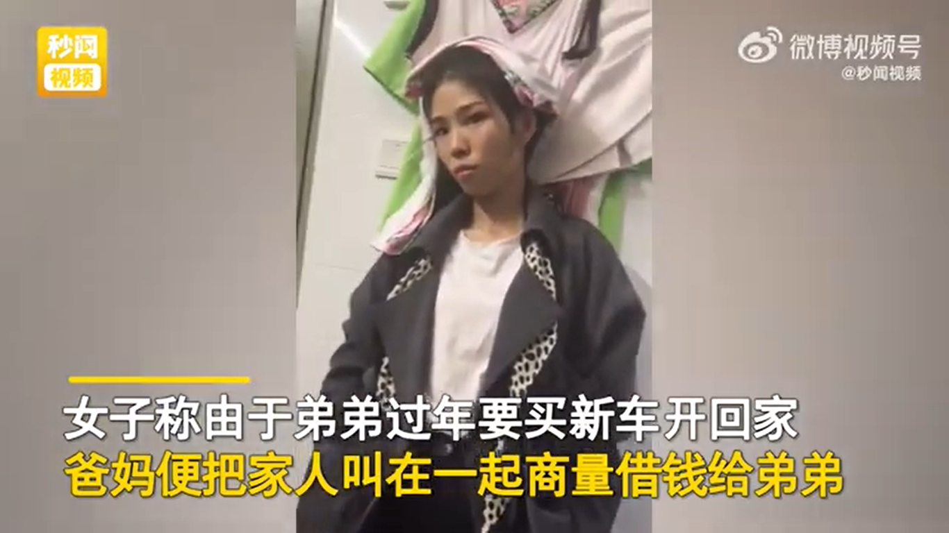 中国福建一名女子11日分享一段视频,表示由于弟弟过年要买新车开回家,爸妈便把家人叫在一起商量借钱给弟弟。