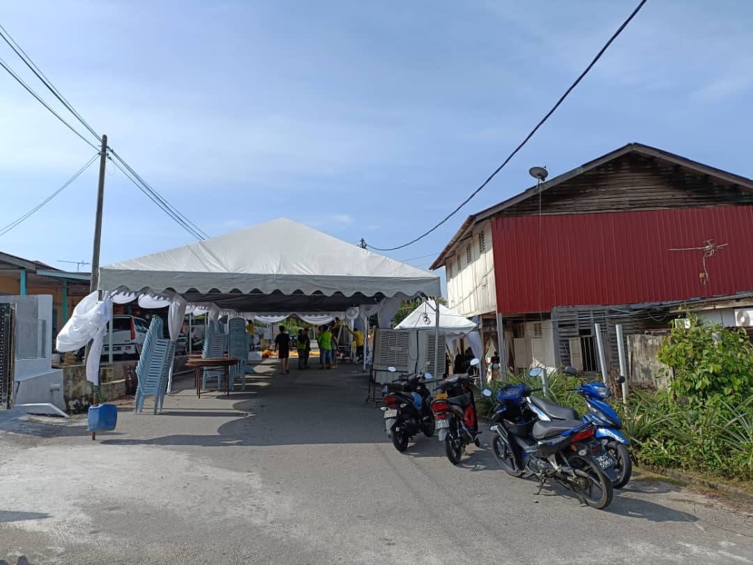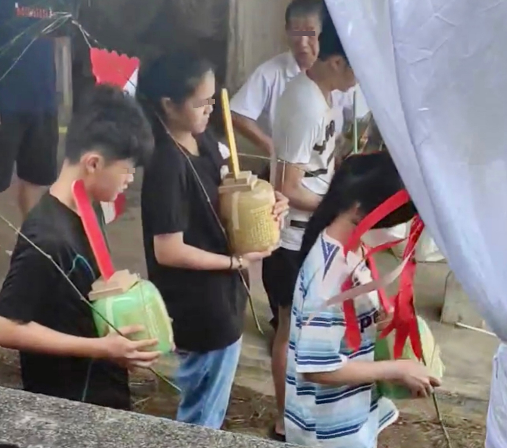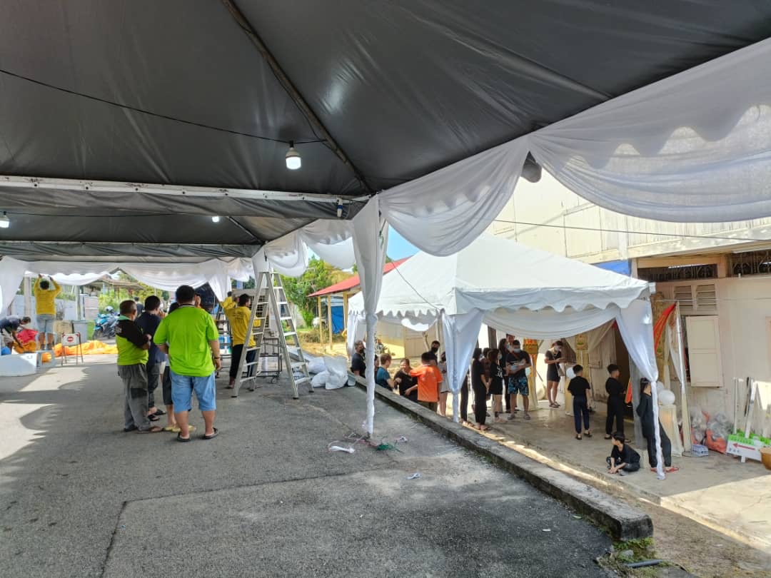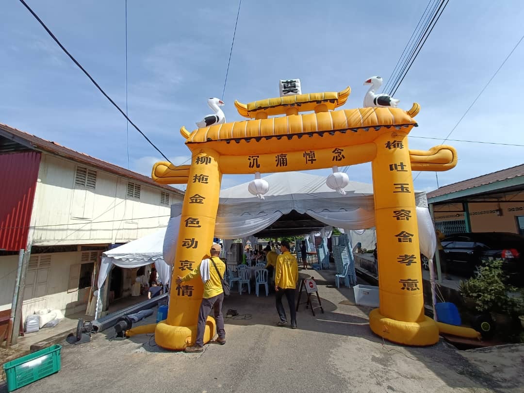家属今早9时许从怀恩园领取骨灰后启程回到新村,并在新村牌楼进行招魂仪式后,才回到老家灵堂。