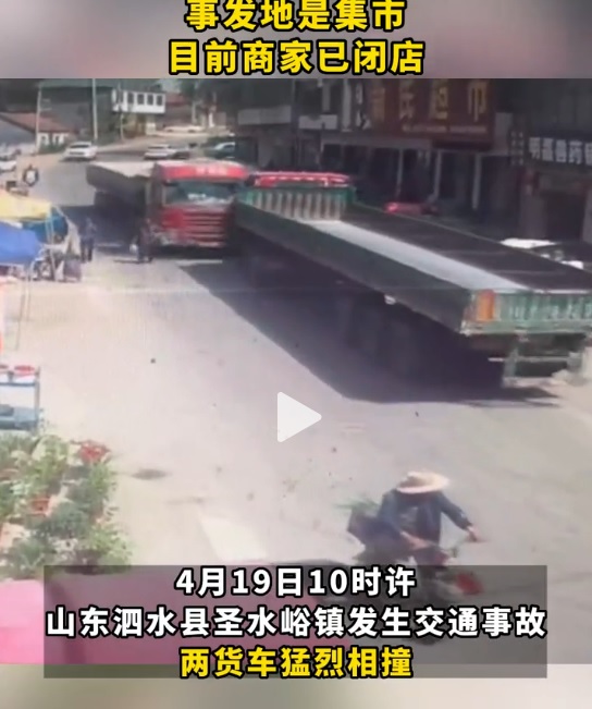 据一段监控视频显示,上午10时44分,当时路上有多名行人和车辆往来,路旁不少人正在摆摊。画面显示,一辆疑似下坡、速度较快的红色车头重型货车撞上对向另一辆速度较慢货车。撞击瞬间速度较快,货车车头严重毁损,从对向货车左侧擦过后继续向前滑行,直至撞到一处建筑物停下。另有多段视频显示,有不少人人躺在地面路边,一处建筑物墙体被撞倒大半,路旁疑有电线杆和树被撞倒或撞歪。