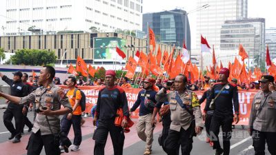 发起遊行的印尼工人工会联合会(KSPSI)主席安迪表示,今天约5万人上街遊行,希望藉五一劳动节表达反对“创造就业综合法”,并要求政府更重视劳权,及逮补侵犯印尼移工权益的非法仲介。