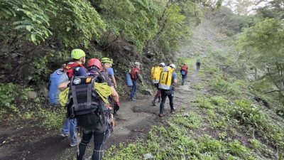 (台北21日讯)台湾10人溯溪团遊屏东飞龙瀑布,因大雨受困,屏东警消今晨持续搜救,并申请直升机救援。