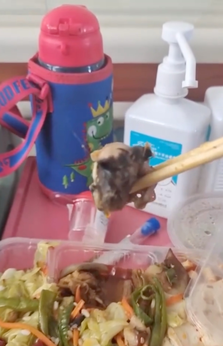 有网友发布短影音爆料称,今天在重庆秀山县中医院餐厅买便当,在“魔芋烧鸭”这道菜中吃出老鼠头。影片显示,当事人用筷子从便当中夹出一个异物极似老鼠头,还有明显的啮齿动物胡须。