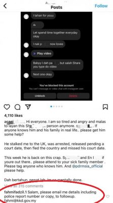 女摄影师阿卡希雅昨天在她的Instagram帐号发布3则贴文累积逾8000个点赞、逾500则留言,引起网民哗然和同情她的遭遇;同时也引起数字通讯部长法米关注,在她的贴文下留下其电邮,请她发送报案书号码等资料,以便他跟进此案。