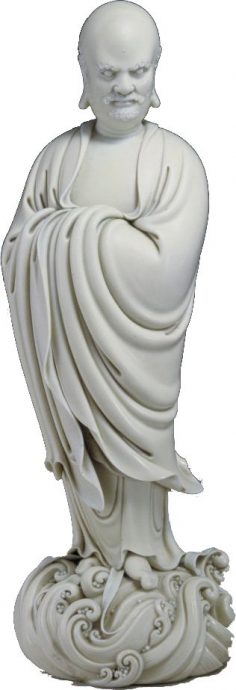 在历史上,达摩真有其人,史书上多数称为菩提达摩。有关达摩的身世有不同的说法,有的认为他是西域波斯人;有的则说他是南天竺某国的三王子,后来出家为僧。中国禅宗将达摩尊为西天第二十八代祖师,意思是说达摩是释迦牟尼的第二十八代弟子。为了传法,达摩通过海上丝绸之路坐船来到中国,将禅宗传入中土。