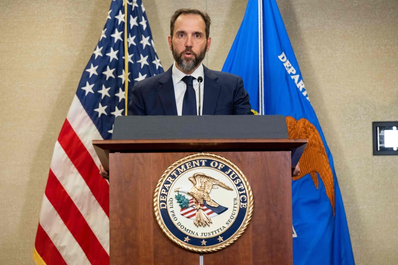 特别检察官史密斯在司法部召开记者会,强调对特朗普就推翻2020年总统选举结果的相关罪名提起诉讼,是为了确保追究其在国会大厦暴乱事件中的刑事责任。(法新社照片)