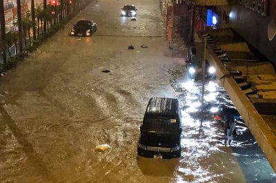 香港市区道路在暴雨肆虐之下,也出现严重淹水的情形,许多道路被迫中断,黄竹坑、何文田、旺角、柴湾、大埔都沦为水乡泽国,不少车辆被困在水中,连公车都被迫停驶,深夜车班也宣告暂停服务。
