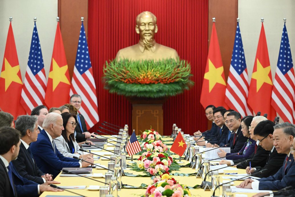 (河内10日综合电)美国总统拜登结束二十国集团(G20)峰会后,星期日下午抵访越南,并与越共中央总书记阮富仲会面。阮富仲表示,越美两国同意将双边关系从全面伙伴关系提升为最高级别的“全面战略伙伴关系”;拜登则表示,美国和越南正深化在新兴科技的合作,特别是在建立更具韧性的半导体供应链方面。