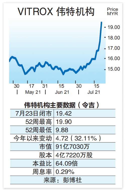 ●旗下产品线需求火红,伟特机构(VITROX,0097,主板科技组)上半年录得8300万令吉核心净利,按年增加89%,超越市场预期,分析员大幅调高2021至2023财政年盈利预测。