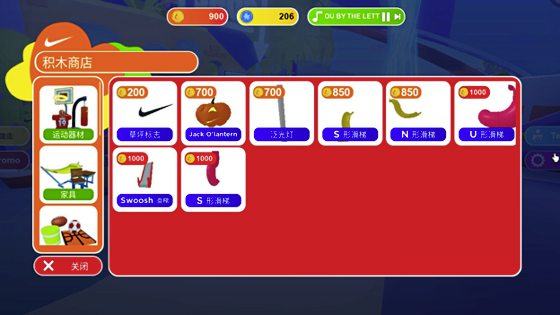 除此之外,玩家可以在“Nikeland”购买游戏道具和服装配件。在游戏世界里面会出现一些“金币”,玩家获取金币之后可以添购家具、运动器材、运动服饰和鞋子,比方说在产品展示厅,让自己的虚拟角色穿上耐克运动鞋,如Air Force 1、Nike Blazer、Air Force 1 Fontanka、Air Max 2021等等。